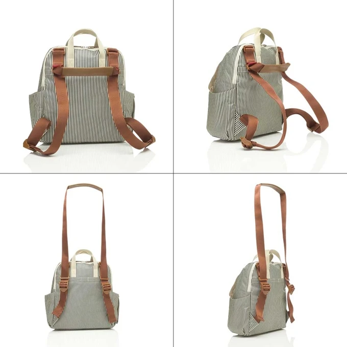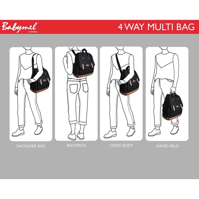 De Robyn Convertible Backpack van Babymel is een trendy, praktische en veelzijdige luiertas met diverse draagmogelijkheden. Deze sterke en ruime tas is eenvoudig schoon te houden dankzij de afwasbare voering. Het hoofdvak sluit met een rits en beschikt over een ruim ritsvak en twee elastisch intsteekvakken. Daarnaast heeft de tas aan de zijkanten twee ruime insteekvakken, een dispenser voor verschoningsdoekjes en een ruim voorvak dat is voorzien van een verschoningsmatje. De handvatten, de schouderriem en de geïntegreerde bandjes voor bevestiging aan een kinderwagen zorgen voor een maximaal gebruiksgemak.