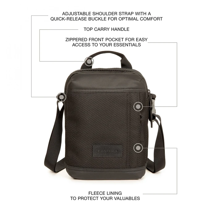 De Eastpak CNNCT The One is een handige, kleine schoudertas die zowel door kinderen als volwassenen gebruikt kan worden. Het unieke aan de tas is dat hij 100% veganistisch is. Dit betekent dat er geen dierlijke producten zijn gebruikt bij het maken van de tas. De schoudertas heeft meerdere ritsvakken aan de binnen- en buitenzijde, zodat essentials zoals zonnebril of geld veilig opgeborgen zijn. Draag de tas comfortabel als crossbody of over de schouder dankzij de verstelbare schouderriem.