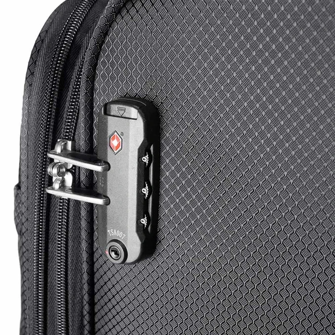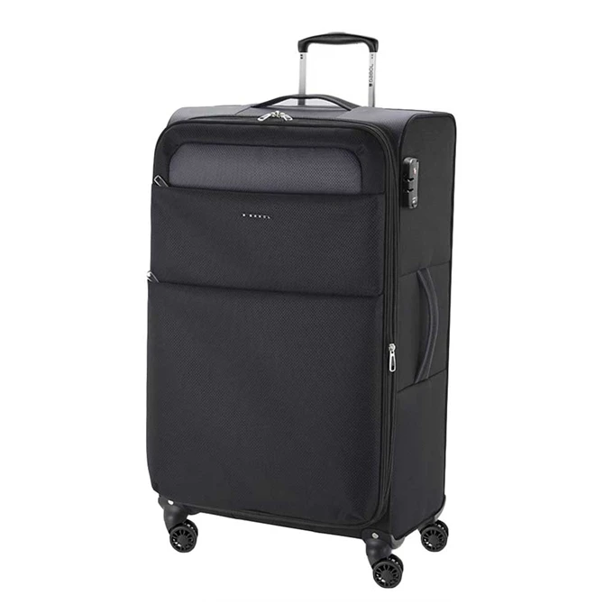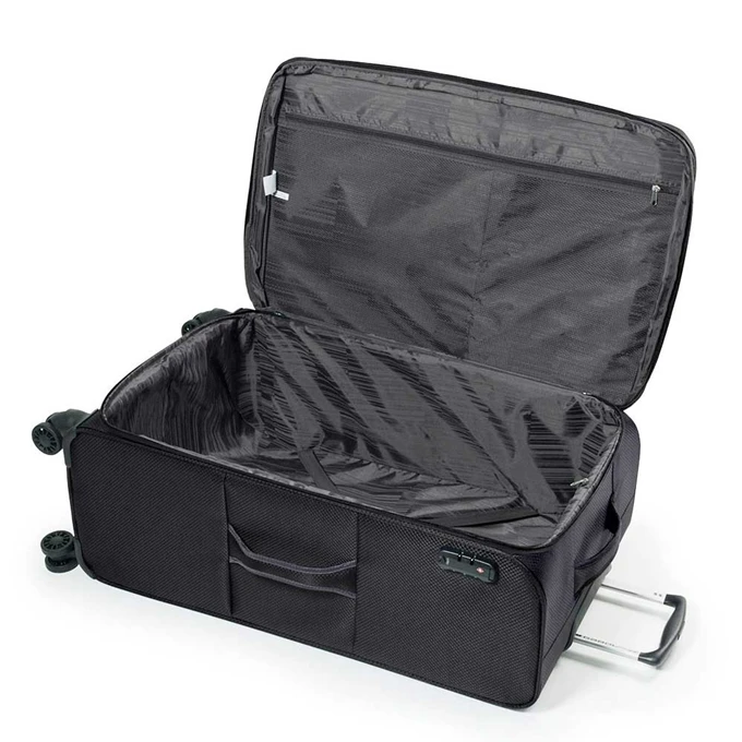 Voor kleinere items is ruimte in de ritsvakken aan de binnen- en voorzijde. De koffer kan erg comfortabel worden vervoerd dankzij de vier soepele, dubbele wielen, de telescopische trekstang en de twee handvatten.