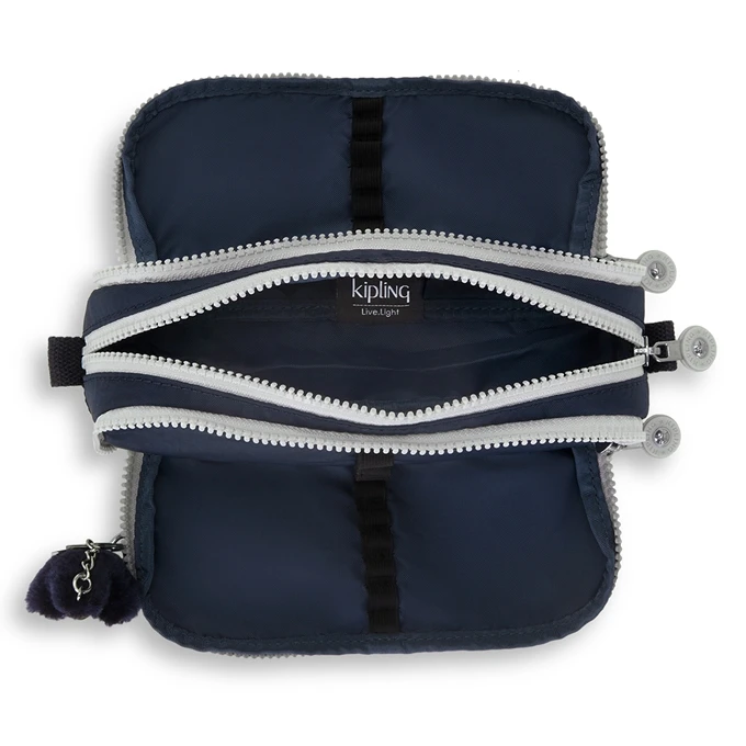 Deze Gitroy etui is een praktische etui van Kipling. De etui heeft een ruim hoofdvak met rits, en twee zijvakken met elastische pennenhouders.