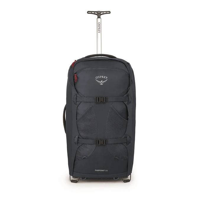De Farpoint Wheels 65 van het merk Osprey is de combinatie van een backpack en een koffer. Het interieur van de backpack is voorzien van twee compressiebanden en twee organizer mesh-vakken. De banden van de backpack zijn weg te werken achter een oprolbaar achterpaneel. Door de gewatteerde schouderbanden en rugpaneel is de backpack comfortabel te dragen. Ook kun je de backpack meetrekken dankzij de meertraps trekstang en de twee soepele wielen. Kortom de ideale backpack om mee op reis te gaan.