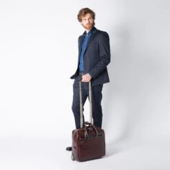 Piquadro Black Square Briefcase With Wheels 2 Compartments Brown