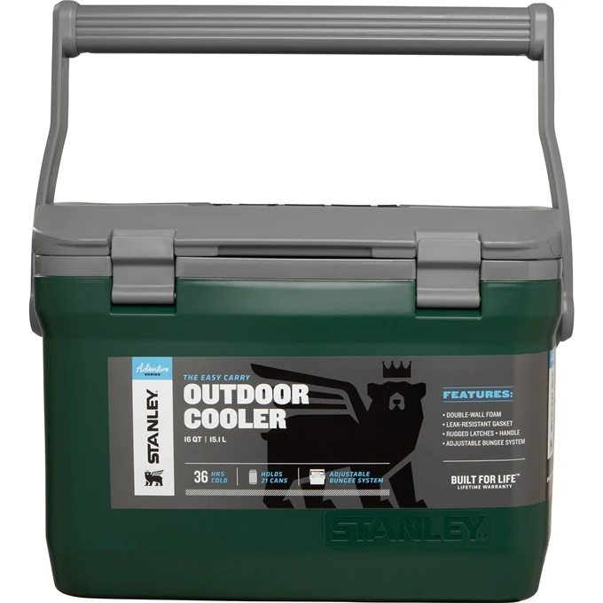 De Stanley Adventure Easy Carry Outdoor Cooler 15.1L is een robuuste en duurzame koelbox met een dubbelwandige isolatie van schuim. De koelbox kan tot 36 uur koel houden, zelfs bij warme temperaturen. De Stanley koelbox is ideaal voor gebruik tijdens outdoor activiteiten, zoals kamperen, vissen en wandelen. Met een inhoud van 15.1L, heb je plek voor 21 blikjes die je de hele dag koud kunt houden. De stevige koeltas is voorzien van een sterke handgreep en een deksel met vergrendelingsmechanisme.