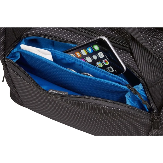 Deze duurzame, lichte en slijtvaste tas is de Crossover 2 Laptop Bag 13.3” van Thule. Berg een 10.1” tablet, een mobiele telefoon, sleutels, pennen en andere kleine eigendommen op in het hoofdvak met organisatiepaneel. Je paspoort kan veilig worden opgeborgen, omdat het uitlezen van persoonlijke gegevens wordt voorkomen door de RFID-blokkering. Een speciaal vak voor een powerbank is ideaal om je tablet in de tas op te kunnen laden. Het andere hoofdvak is ruim genoeg voor A4-formaat documenten en biedt opbergruimte voor een 13.3” laptop. Draag de tas comfortabel in de hand of over de schouder met behulp van de verstelbare schouderband.